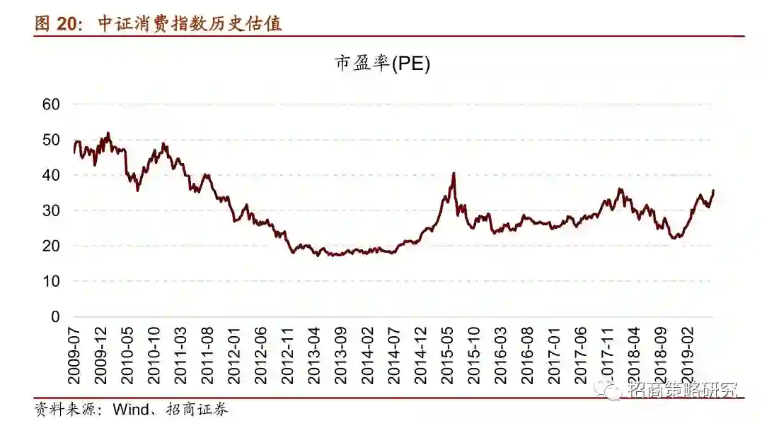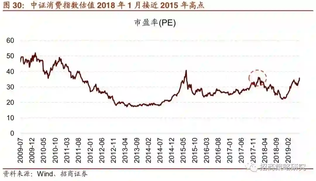 其实事后从估值上看,这个位置消费并不贵,2012年7月12日,中证消费指数估值为26倍。由于业绩优秀,即便股价在持续上涨,但是估值并没有进一步的提升。