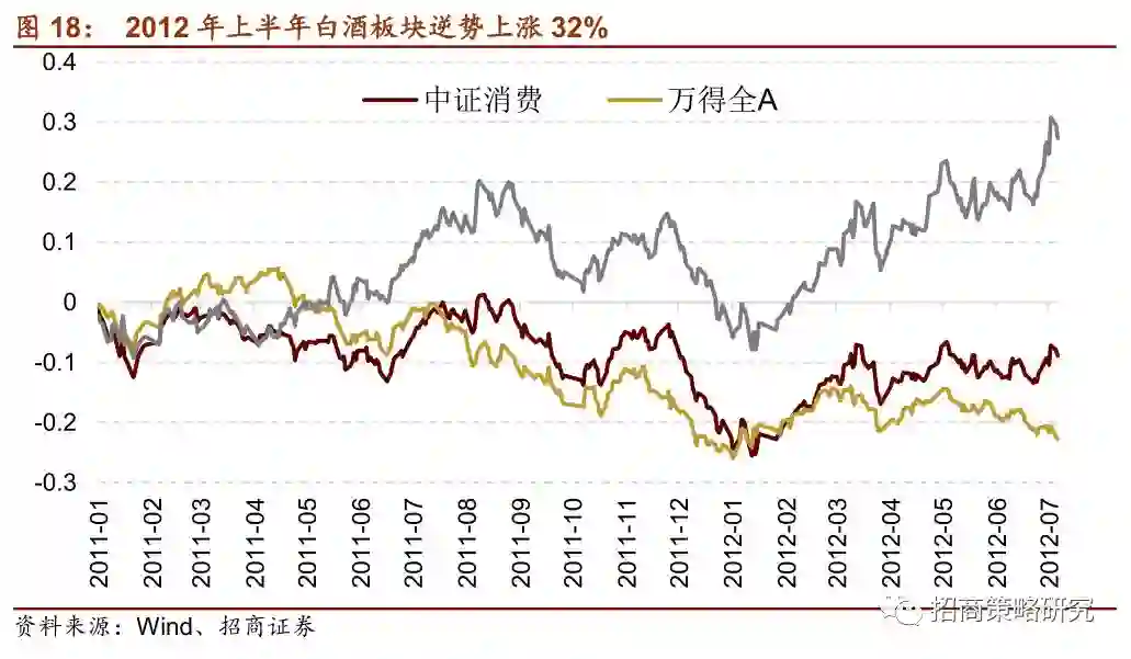 产品提价,业绩超预期,2012年二季度是以白酒为代表的消费板块最舒服的一段时光。在2012年春季攻势过后,很多板块都开始持续下跌,但是只有消费继续上涨,一季度抛弃白酒等消费的板块的投资者再次被狠狠的教训了一把。2012年上半年,白酒板块逆势上涨32%。在那个时候已经是让人惊叹的成绩。但是没想到,七年后的2019年上半年,白酒板块涨幅竟然超过70%。现在一比,2012年的白酒指数真是小巫见大巫了。