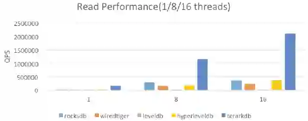 预热(warmup),在某些特殊场景下,数据库可能需要预热。因为去掉了专用缓存,TerarkDB的预热相对简单高效,只要把mmap的内存预热一下(避免Page Fault即可),数据库加载成功后就是预热好的,这个预热的Throughput就是SSD连续读的IO性能(较新的SSD读性能超过3GB/s)。