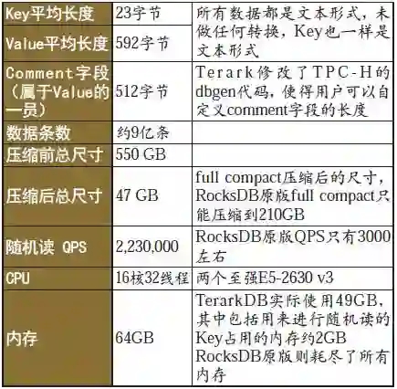 在TPC-H的lineitem数据上,使用TerarkDB和原版RocksDB(BlockBasedTable)进行对比测试: