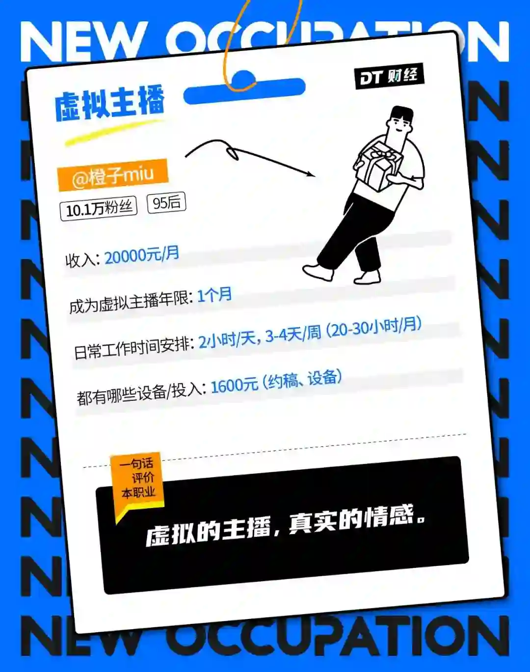 除此之外,即便对大多数普通人而言,“虚拟人”依旧是一个稍有距离感的概念,但随着“虚拟人”的概念日益渗透主流,也有越来越多人自己制造虚拟形象,把“中之人”作为副业来尝试……