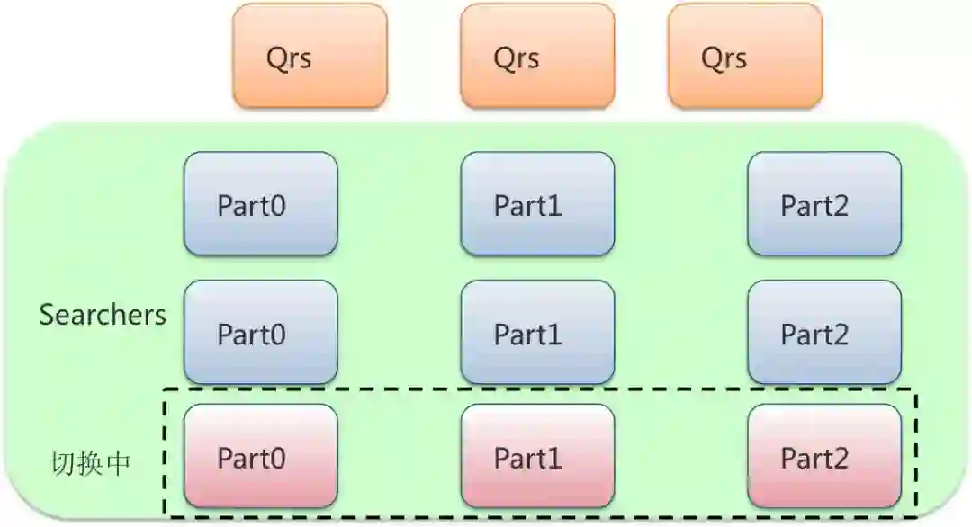 在实际的部署中,Qrs和Searcher都是采用多行部署的方式,可以根据业务的流量变化作调整。Searcher还可以根据业务的数据量调整列数,解决单机内存或磁盘放不下所有数据的问题。