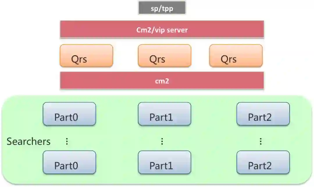 Qrs用于接收用户查询,将用户查询分发给Searcher,收集Searcher返回的结果作整合,最终返回给用户,这里的用户既指直接通过http请求查询引擎的自然人,也指Ha3的上游服务,如sp(搜索链路的Ha3上游服务)和tpp(推荐链路的Ha3上游服务)。