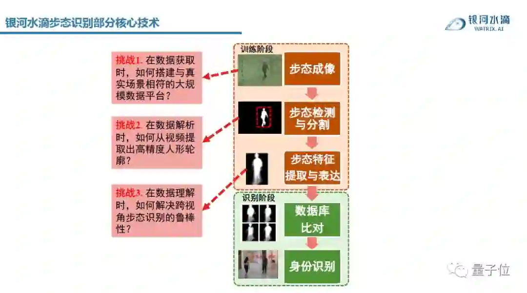 每一个环节其实都是一个非常难的问题。比如在数据获取阶段,怎么获取数据,怎么构建步态识别的数据库;在获取到数据后怎么分割前景和背景,怎么让它更精确;在特征表达的阶段,怎么解决跨视角的识别问题等等。