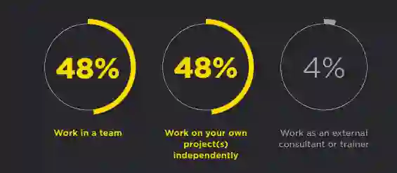 有趣的是,将近一半的 Python 用户独立进行项目开发,4% 的用户作为外部咨询或训练师。