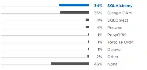 两个最流行的 ORM 是 SQLAlchemy 和 Django ORM,它们与两个领先的 Web 开发框架:Flask 和 Django 的流行度相匹配。