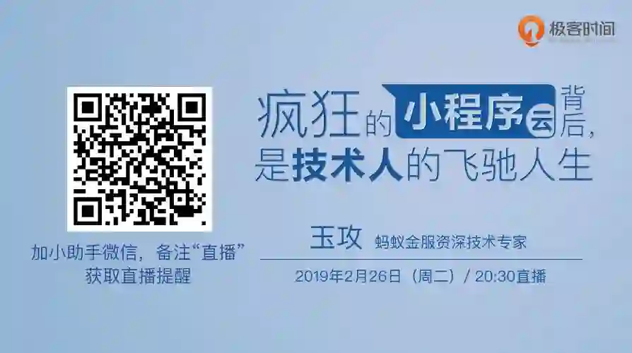2019 年是小程序爆火的一年。虽然 BAT 三家对小程序都有着各自不同的理解,也在围绕各自优势分头布局,但相同的是,他们都将小程序放在了未来战略中的一个关键位置。2019 年小程序会带来哪些颠覆性变革?支付宝小程序云如何帮助企业商家快速开发小程序?今晚 8:30 InfoQ 专访蚂蚁金服资深技术专家玉攻,畅聊支付宝小程序背后的故事。直播间留言即有机会赢得精美礼品, 点击【阅读原文】获取直播地址,或添加小助手微信获得直播提醒!
