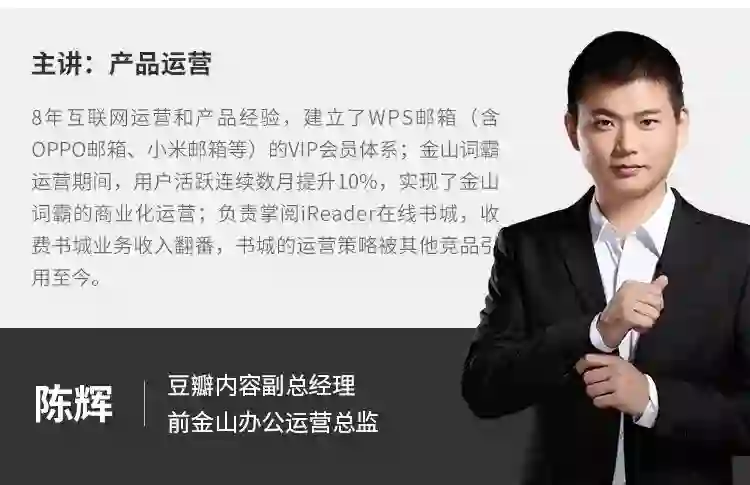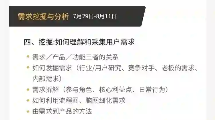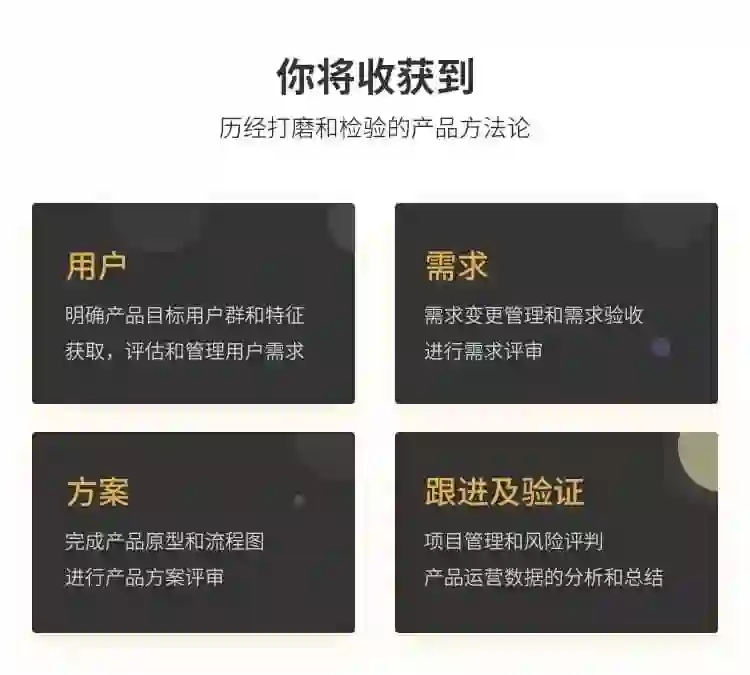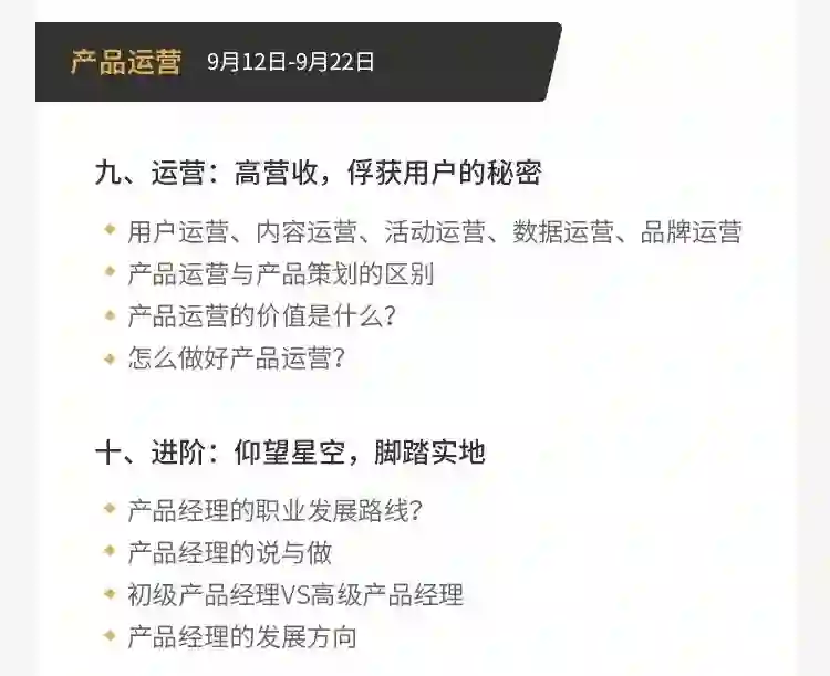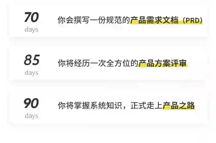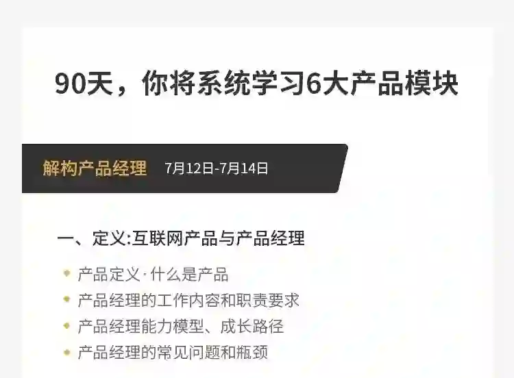 能够帮转岗/入行产品新人,通过3个月的时间,理解产品经理的工作要求和工作方法,能够自主策划产品方案并推进落地,独立负责功能模块。成为能独挡一面的产品经理。