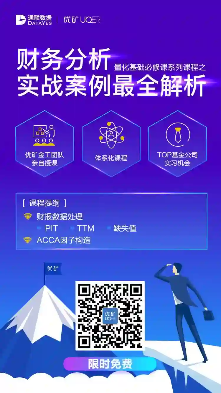 踏入基本面量化投资殿堂,从财务分析开始,马上扫描下面的二维码或者访问优矿官网进入“量化学堂”,开始学习吧!