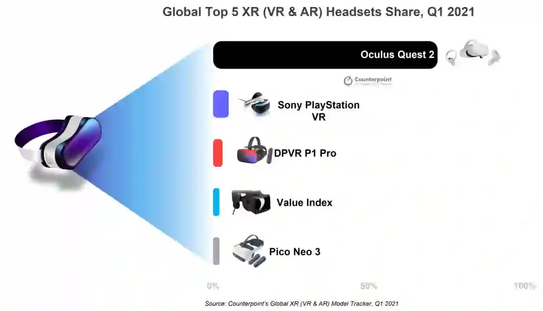 就目前AR/VR头显市场份额来看,Meta吃了最大一块蛋糕。