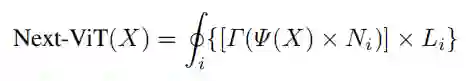 将 NCB 和 NTB 与上面的 Next Hybrid Strategy 进行叠加来构建 Next-ViT,可以正式定义为: