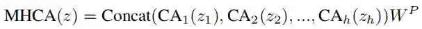 在这里,MHCA从h个并行表示子空间中捕获信息。为了促进多个头部之间的信息交互,还为MHCA配备了一个投影层(WP)。