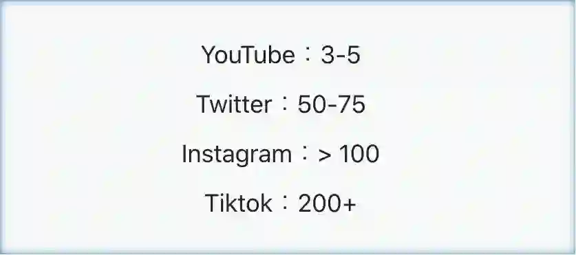 一个粗略的统计,在大概90分钟的时间内,每位用户能接触到的内容数量大致如下: