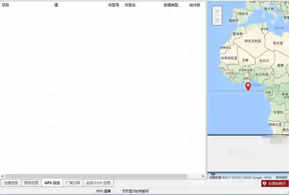 看来这软件判定这个照片修改过了,读取不了 Exif 信息。