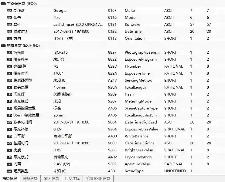 不过这么看下来实在是太费劲了,去下了个看 Exif 信息的工具
