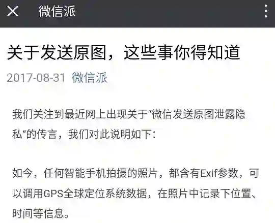 这些文章大概的意思是说,千万不要用微信发原图,会造成隐私泄密。