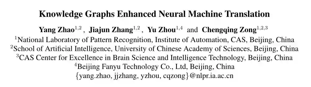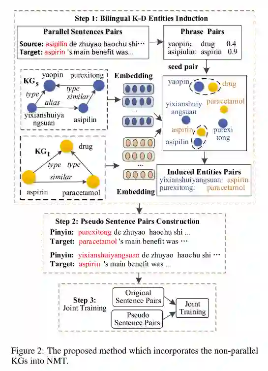 (1)提出了一种将非并行KG合并到NMT模型中的方法。