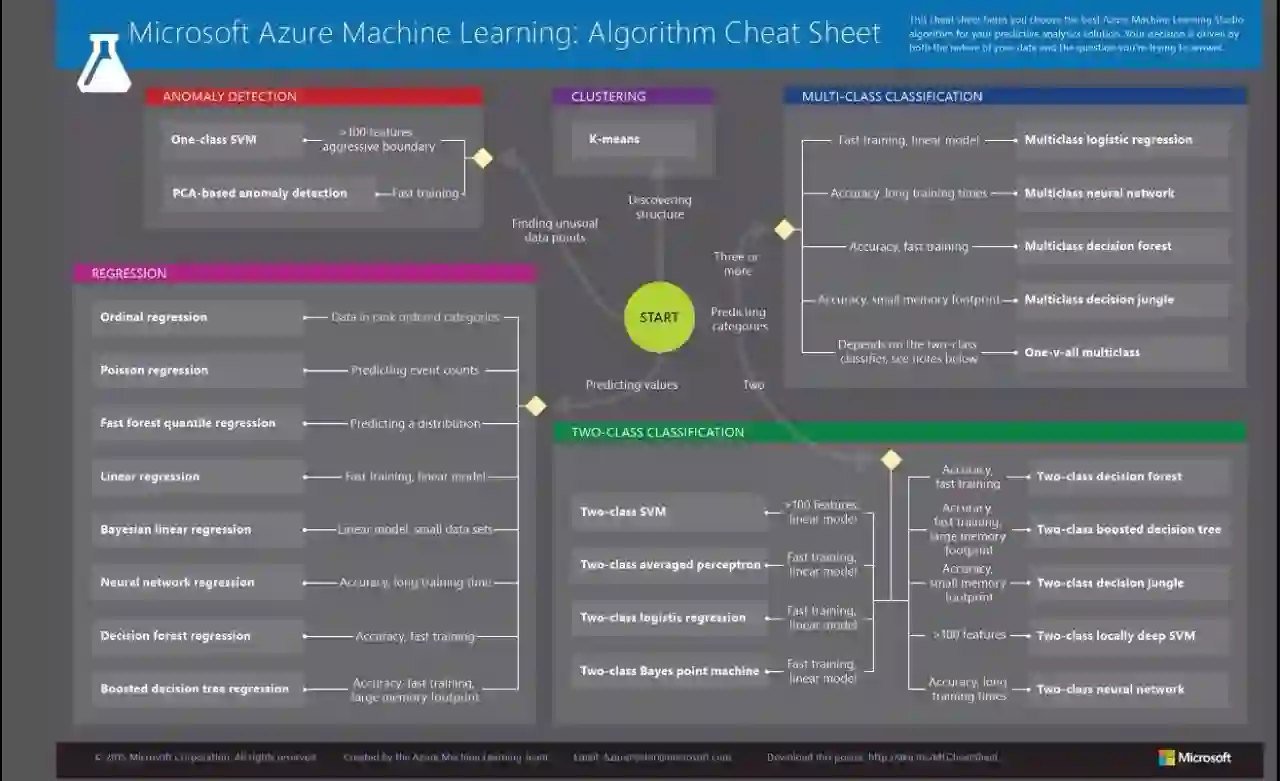 Azure Machine Learning cheat-sheet可以帮助你探索这些算法。