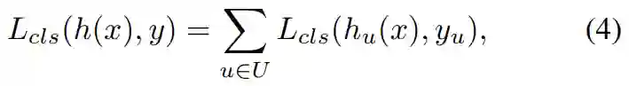 因此一个简单的想法是集成多个使用不同阈值u训练的分类器,如Figure 3 (c)所示,则优化的损失函数为