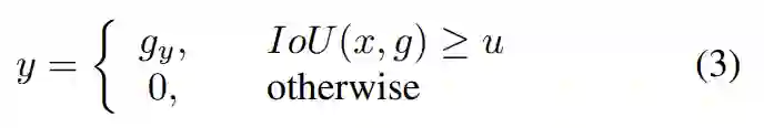其中 gy 为目标 g 的真实类别标签。由于阈值u较小时,正样本有很多噪声,影响检测器精度;u较大时,正样本IoU很大,样本数量却变少,导致检测器训练时容易过拟合。