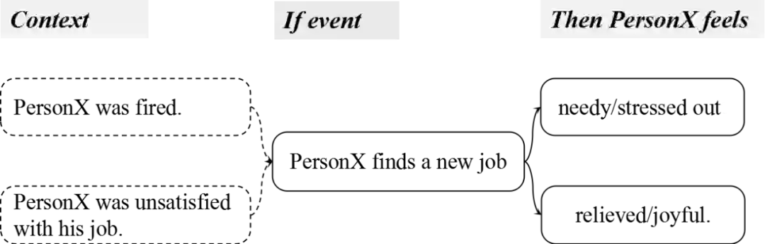 Base event:If-Then推理的前提事件,如图1中的“PersonX finds a new job“。