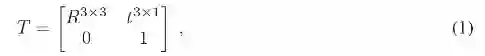 每一个训练 tuple 中都包括一对图像(I,I'),即同一个目标的两个不同视角图像。此外,我们已知它们的相对刚性变换 T。T 用于从 I 到 I' 的 3D 形状转换。T 的矩阵形式如下: