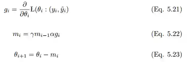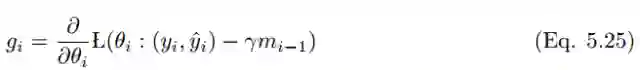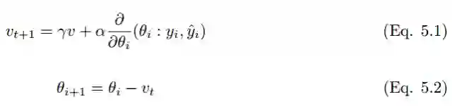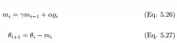 其中 γ 和动量项相同。实践中,该值通常设为 0.9 左右。根据等式 3.13,SGD 更新的等式为:
