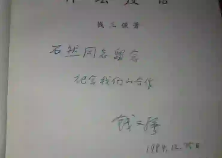 题词中钱老亲切地写道“纪念我们的合作”,我想是指他给中央首长讲课的事,那是1980年。