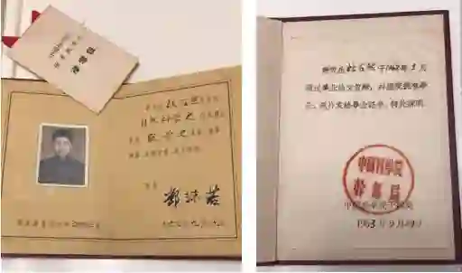 毕业证书外覆硬皮,姓名、专业等项目是毛笔手书填写的。证书大小:10cm×15cm。证书照片经过中国科学院钢印骑缝。证书是由中国科学院干部局经办的:毕业证书登记第0092号。准考证也同时保存,发证日期:1956年8月14日。