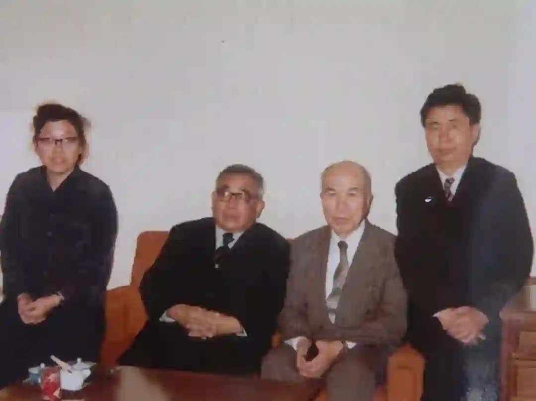 图6. 铃木久男(左三)与访日的卢嘉锡院长(左二)、姚佩君(中科院外事局日文专家)和杜石然(右一),下平和夫先生摄