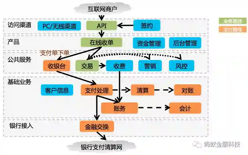 图:简化的支付路径图(注:该图来自蚂蚁金服内部)