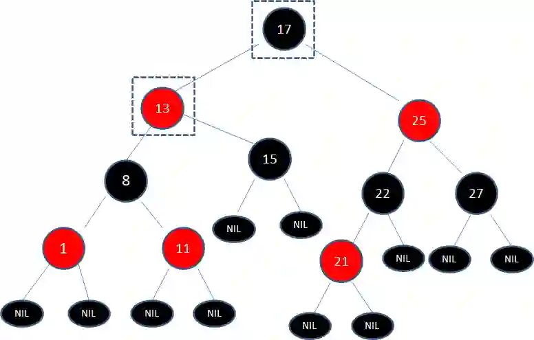 接下来,让结点17变为黑色,结点13变为红色: