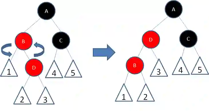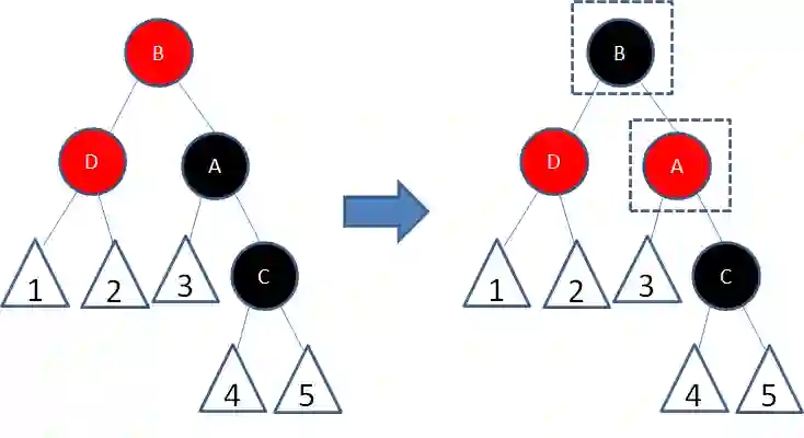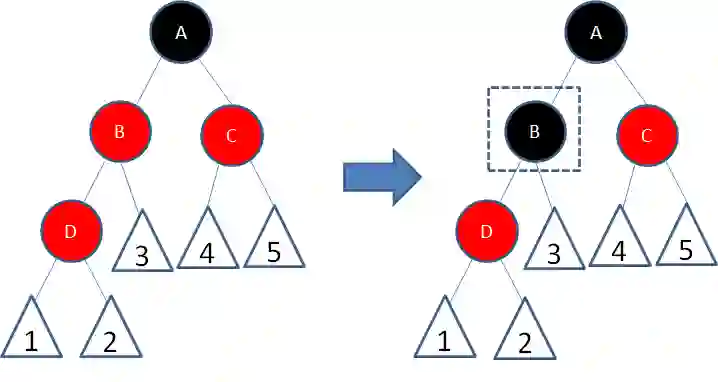接下来,我们让结点B变为黑色,结点A变为红色: