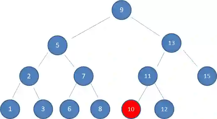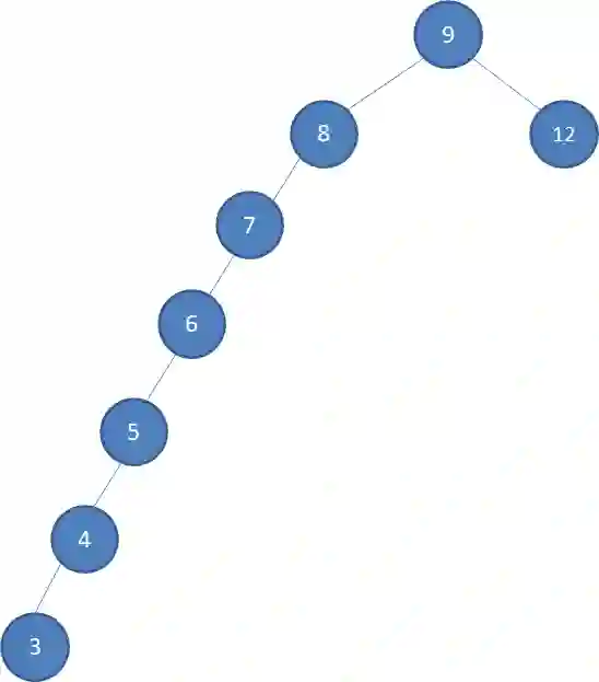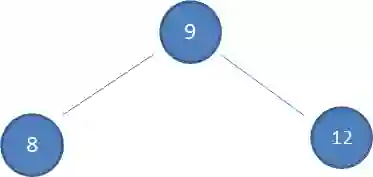 假设初始的二叉查找树只有三个结点,根结点值为9,左孩子值为8,右孩子值为12: