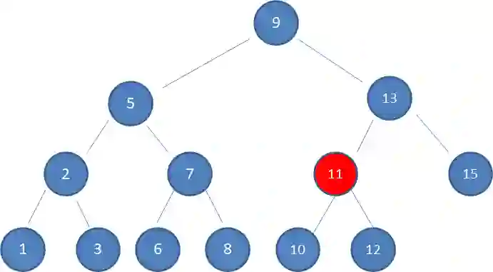 3.由于10 < 13,因此查看左孩子11:
