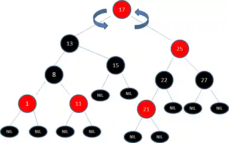 于是我们经过三次变色,22变为黑色,25变为红色,27变为黑色: