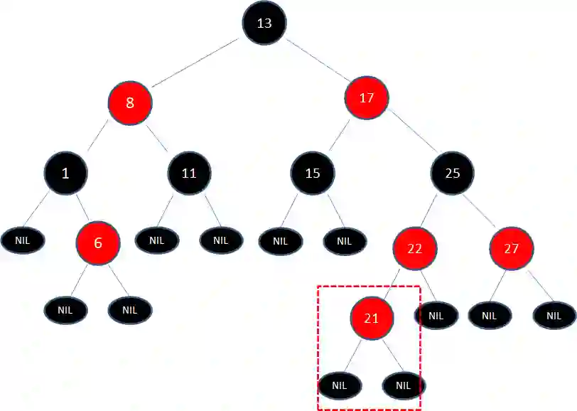 给定下面这颗红黑树,新插入的结点是21: