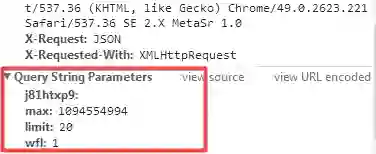 网络面板(Network)会提供实时的网络请求和下载的相关信息。点击网络面板然后F5刷新后下拉网页查看XHR请求可获取request信息: