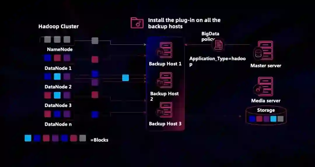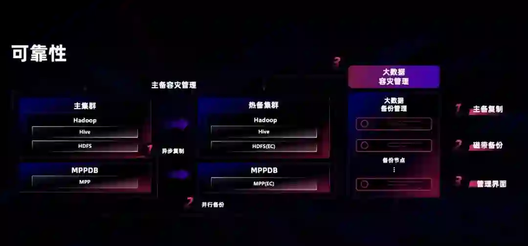 上图是数据离线备份架构。金融机构在监管方面,对于数据存储可靠性的要求很高,所以,我们将 NBU 磁带备份系统和 Hadoop 以及 MPPDB 数据库的接口做了集成,实现了类似于 Oracle RMAN 的数据存储,增量备份的能力。