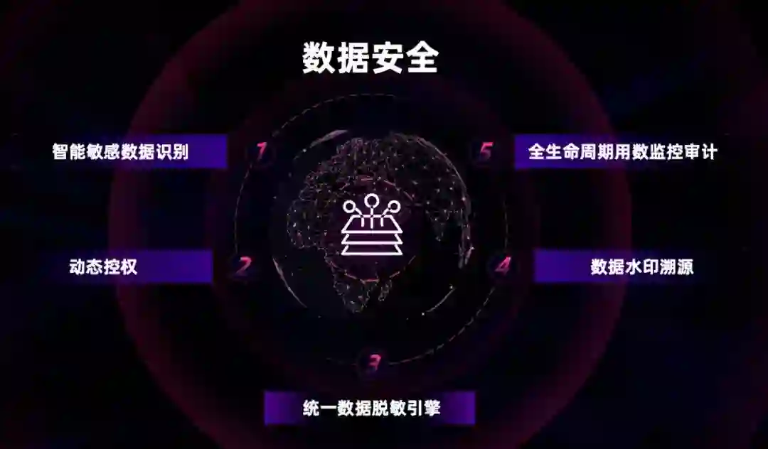 因此工行设计了一套全生命周期用数监控审计,类似于 Ngnix 的 access.log,主要用于事后追溯审计。当用户将数据拖回到本地时,平台会对数据加上水印,当有些数据被非正常公开后,就可以知晓数据泄漏的来源,同时对身份证、手机号、卡号等敏感字段,在返回时动态脱敏,比如 11 号的手机号中间几位都会变成“********”。