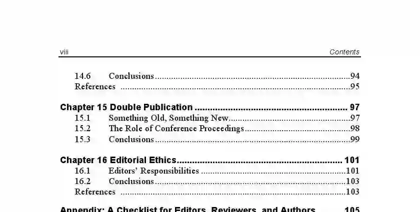 这本书可以读得通读,我推荐给那些对写作和发表论文比较新的早期职业科学家。它还可用作特定主题的参考(例如,如何生成一个好的图形或编写摘要)。每章都特意很短,可以单独阅读,便于参考。附录是编辑、审阅者和作者的清单,是本书经验教训的摘要。