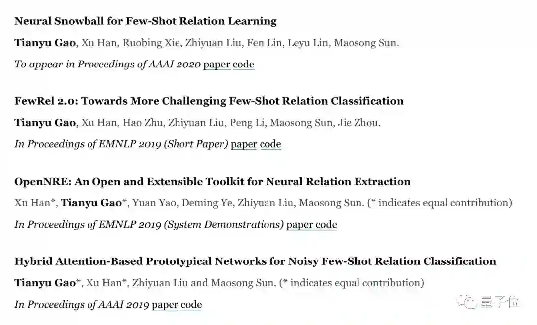 4年里,高天宇总共在AI顶级学术会议上发表了4篇论文:两篇AAAI、两篇EMNLP。