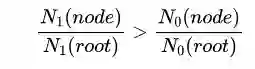 比如二分类,根节点属于 1 类和 0 类的分别有 20 和 80 个。在子节点上有 30 个样本,其中属于 1 类和 0 类的分别是 10 和 20 个。如果 10/20>20/80,该节点就属于 1 类。