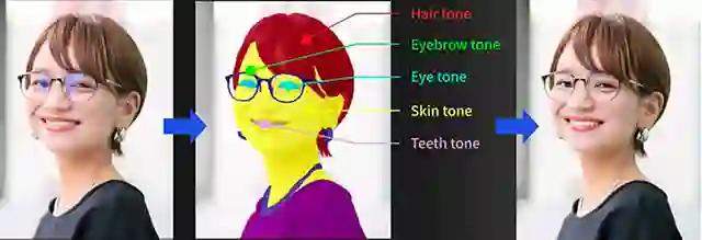 (左)原始照片,(右)使用实时语义分割捕捉照片时达到的阴影和色彩效果。