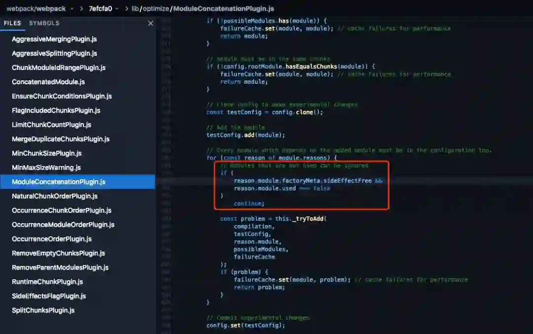 在 ModuleConcatenationPlugin 中,带着 sideEffectFree 标记的模块将不会被打包: