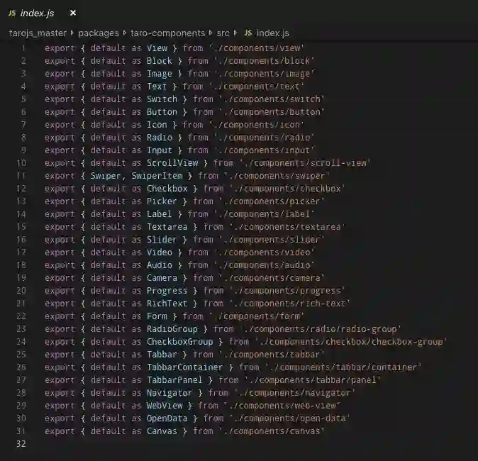 事实上,@tarojs/components 的源码本身是使用 ESM 规范的: