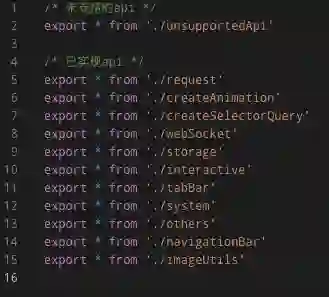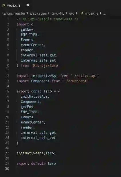 粗略一看,@tarojs/taro-h5 还挺 “ESM” 的,但这还不够。我们还需要将这些 Api 以 namedExports 的形式导出,开发者使用 import { XXX } from '@tarojs/taro-h5'导入 Api 即可。