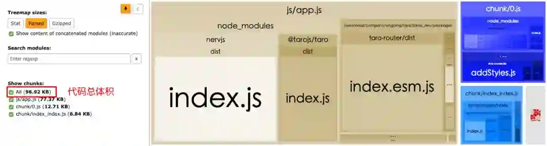 事实上,我们在 H5 端应用中并不会使用到全部的 Taro 组件和 Api。将这些依赖包全部打包进应用是没有必要,也是不合理的。进行死码删除(Dead code elimination),进一步缩减代码体积,就是我们的优化方向之一。