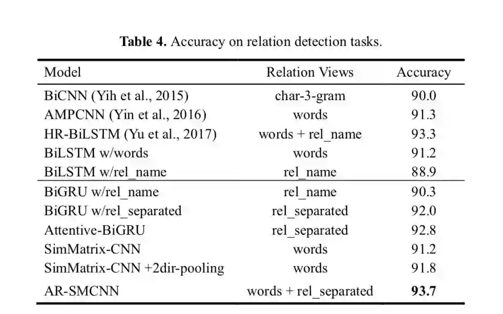 利用 attentive rnn 作为 encoder compare 的框架, 将 question 作为输入到 bigru中,并于 relation 做一个 attention: