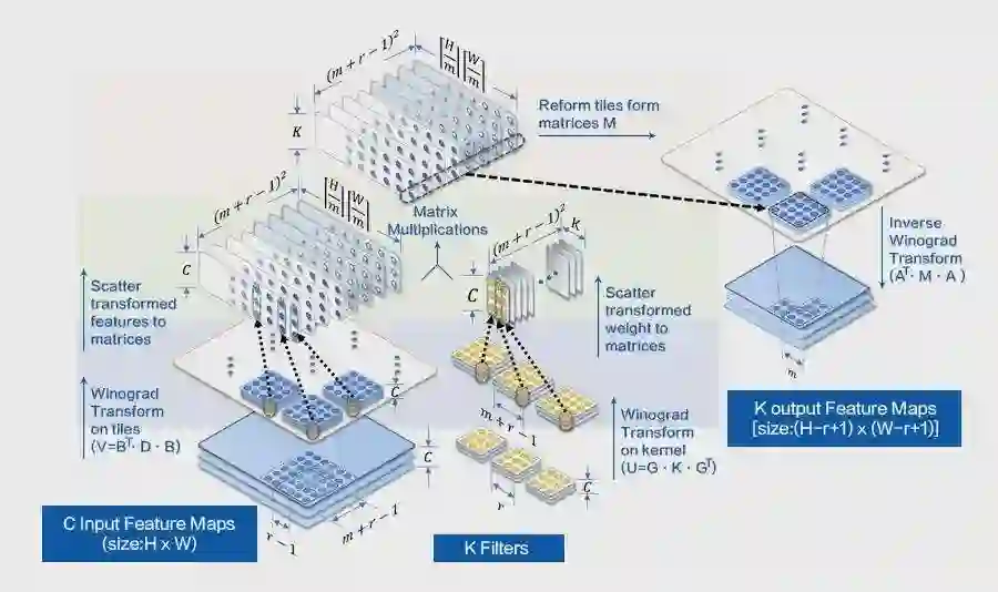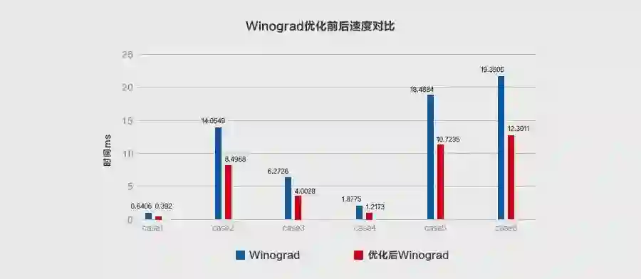 在深度神经网络中,卷积计算占据了绝大部分的时/空复杂度,Im2col+MatMul 可以提高访存友好性,但无益于时间复杂度的减少,因此卷积计算优化实践中诞生了 Winograd 算法,具体数学原理可参见论文[2]。